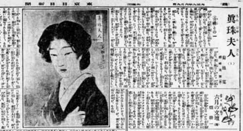 『真珠夫人』(しんじゅふじん)は、1920年(大正9年)の6月9日から12月22日まで「大阪毎日新聞」、「東京日々新聞」に連載された。内容は、大正時代、男爵令嬢、唐澤瑠璃子は敵の罠にはめられた父を救う為、泣く泣く卑しい高利貸しの荘田勝平の妻となるが、…