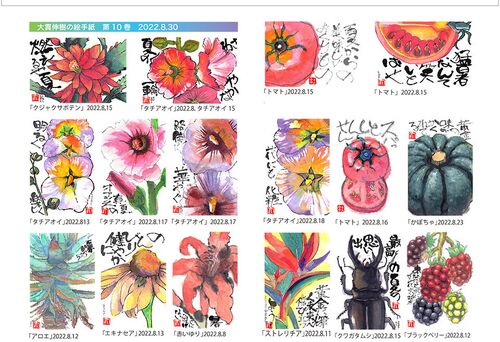 絵手紙を習う(37)……「大貫伸樹の絵手紙」第10号完成!】 (これは、絵手紙は投函してしまうと手元に残らないため、備忘録として制作しており、配布するのを目的としていません。) 今回は、タチアオイが5枚も掲載されています。子供の頃から大のお気に入り…