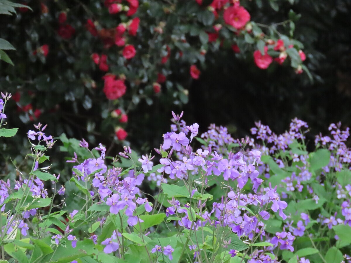 ハナダイコン(花大根、学名Hesperis matronalis)は、アブラナ科ショカツサイ属の二年草。草丈40 - 90cm。葉は互生し、柄のないへら形の単葉で、花は4-5月頃に咲き、茎の上のに直径2cmくらいの薄紫の4弁花をを総状花序につけます。夕方になると、非常によい香りがします。